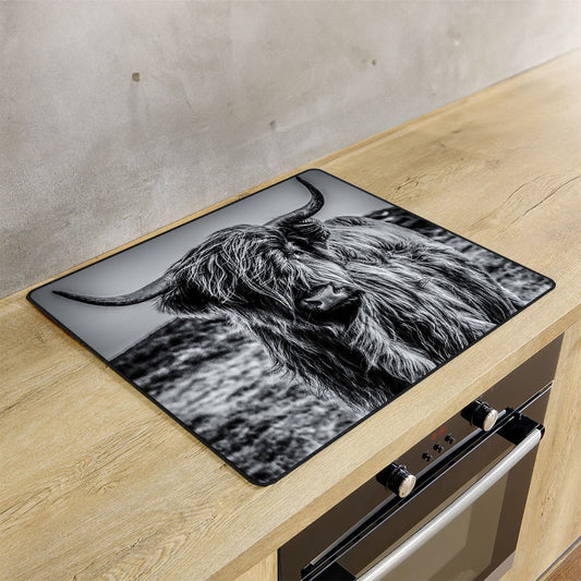 Protège Plaque Induction - Highlander Écossais Noir et Blanc